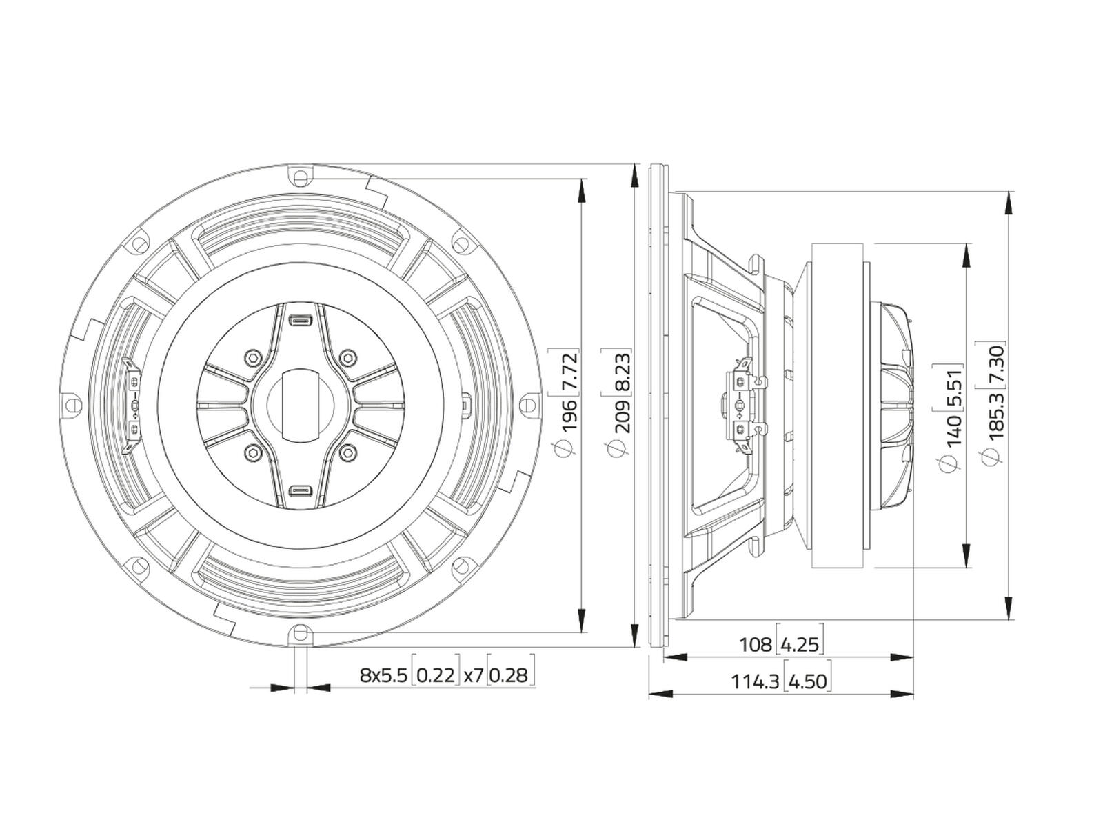 LAVOCE CSF082.00K-4 8" Coaxial Speaker, Ferrite Magnet, Steel Basket Driver