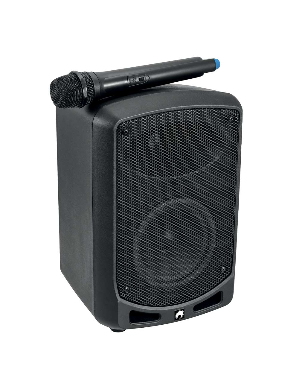 From one city to another without any problems: The portable PA systems are powered by a rechargeable battery, which makes a direct power connection unnecessary. So you stay flexible.